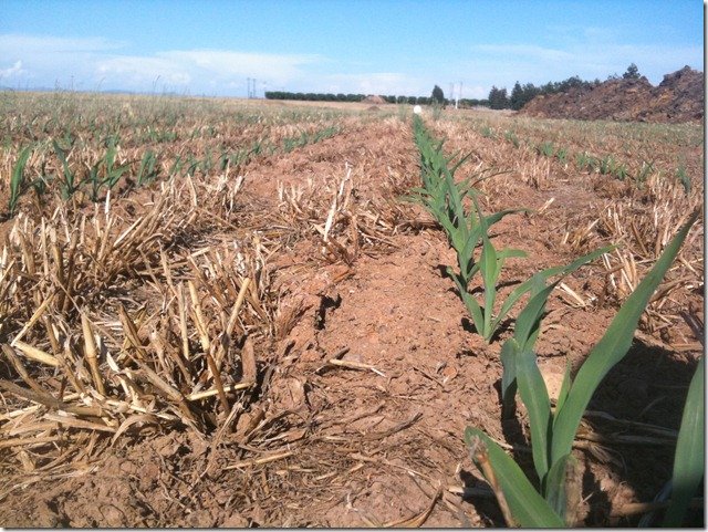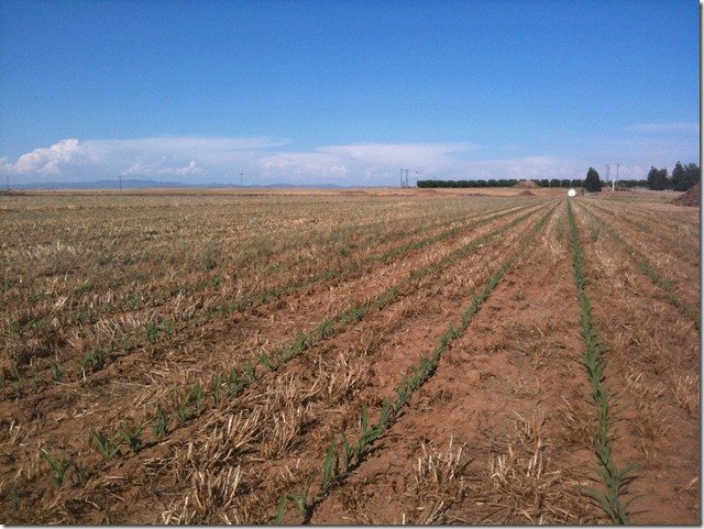 We recently cut our winter crop back in May, and just finished planting our corn in early June. The corn is now starting to come up. We will harvest the corn later this year.