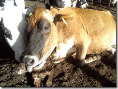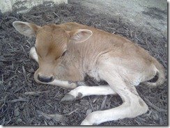 Since we are on the topic of calf care, i figured I’d share more about how the baby calves are treated on our dairy. The above picture i think is a good representation of how much we care for the calves. I can assure you that the above picture is not the angel of death, but one of our employees (he wanted to remain anonymous). He was carrying the baby to its new home.