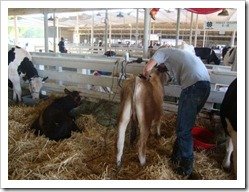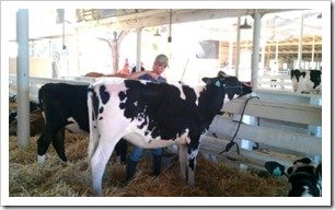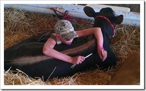 Getting the animals ready for fair can be a lot of work. Some of the cows need a lot of training while others are naturally ready for the show ring. My sisters cow has been to the fair a few times so she remembers what to do. You can just walk up to her in her pen and put the rope halter on. Some of the other cows needed more training, so they were walked as much as possible.