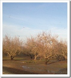 **Left: our neighbors irrigate the Almond trees, irrigating rarely happens in January. Right: A dry field**